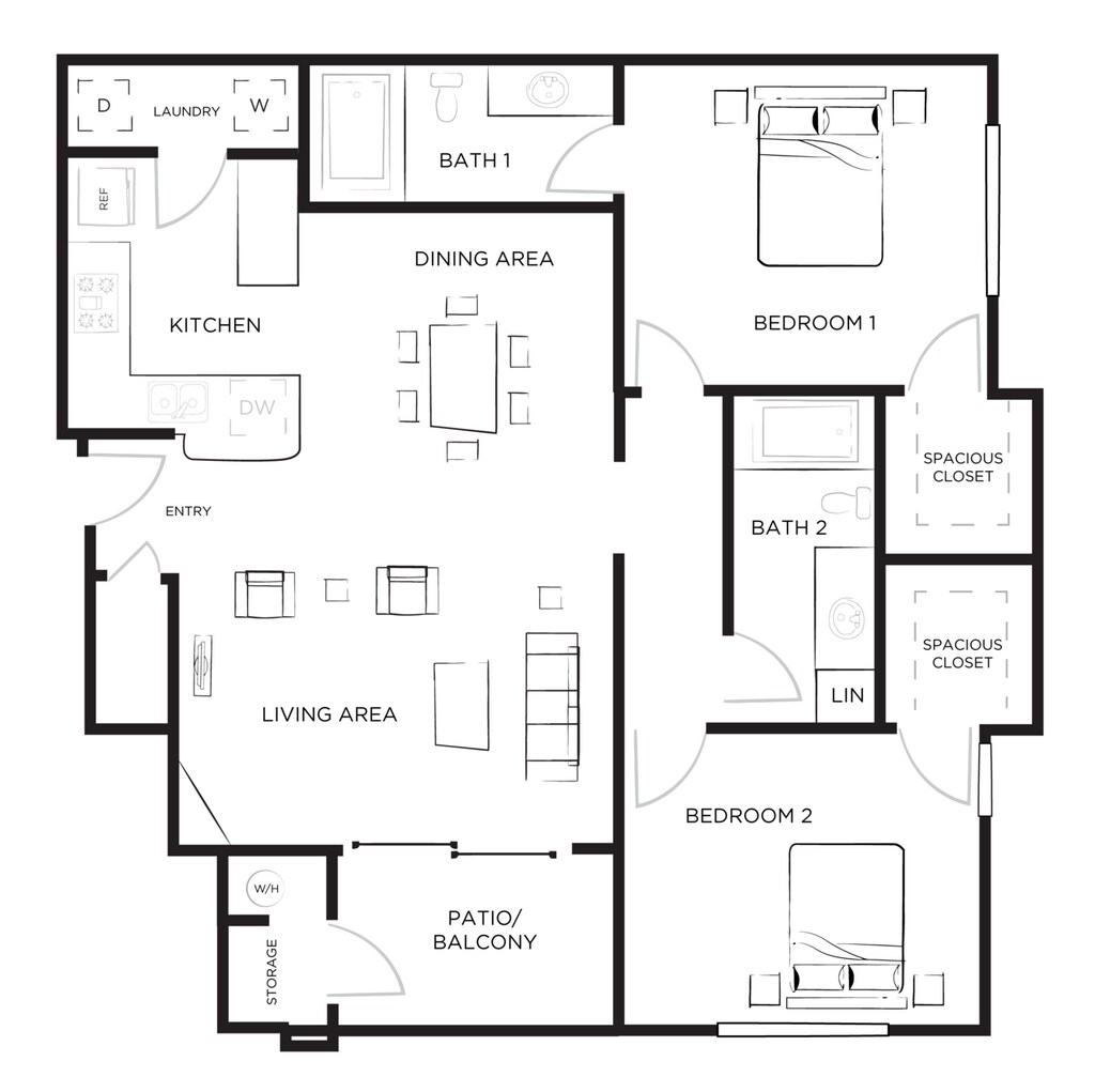 2 Beds, 2 Baths, 1060 sq ftAvailable Dec 2Model Gallery