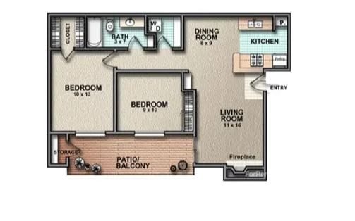 2 Beds, 1 Bath, 800 sq ftModel Gallery