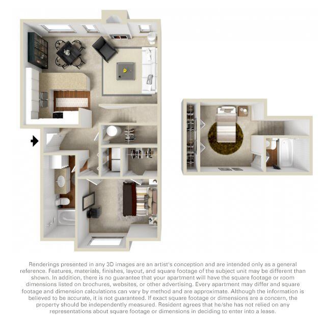 1x2 Classic Loft - Floorplan Apartment Unit: H206Apartment Model: 1x2 Classic Loft1 Bedroom, 2 Bath, 985 sq ftAvailable Now1x1 Premium