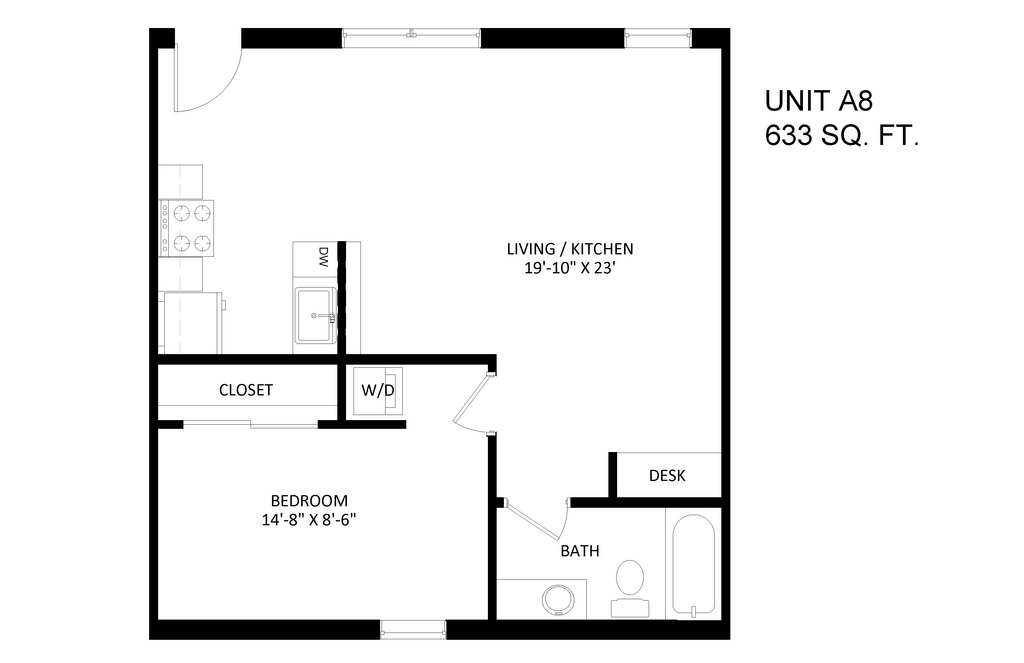 1 Bed, 1 Bath, 633 sq ftAvailable NowLargest 1 BedroomThis is the largest 1 Bedroom at this PropertyModel Gallery
