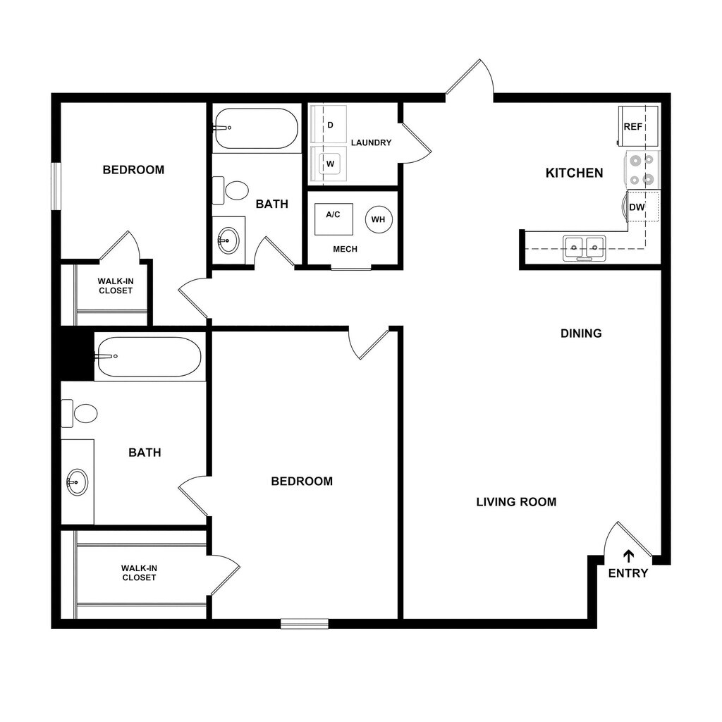 2 Beds, 2 Baths, 1000 sq ftAvailable NowModel Gallery