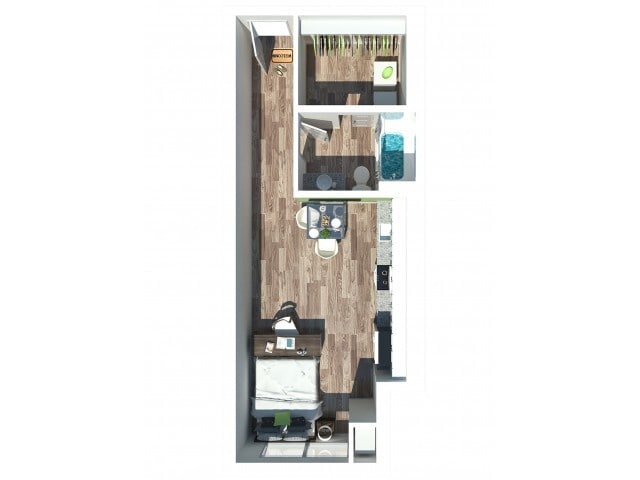 PINE - Floorplan 1 Apartment Unit: 124Apartment Model: PINEStudio, 1 Bath, 550 sq ftAvailable NowFloorplan ELM