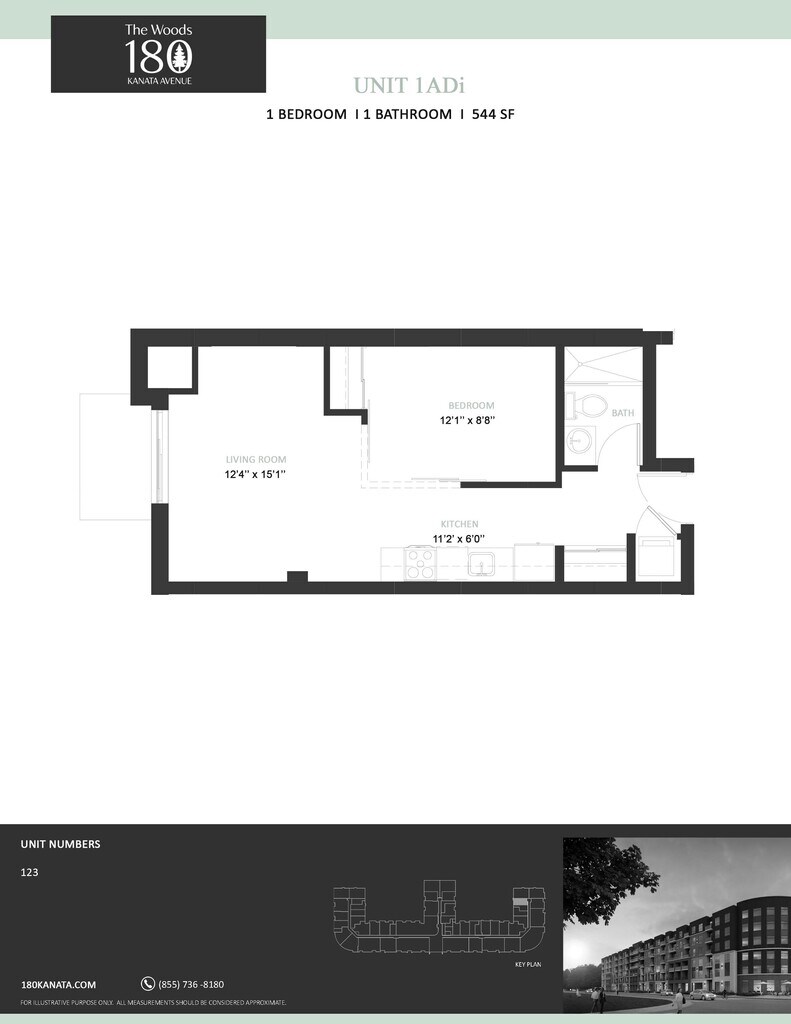 The Woods at 180 Kanata Avenue offers Studio to 2 Bedroom apartments starting from C$1,995 and having 536–1,248 sq ft. Here is the current pricing and availability: