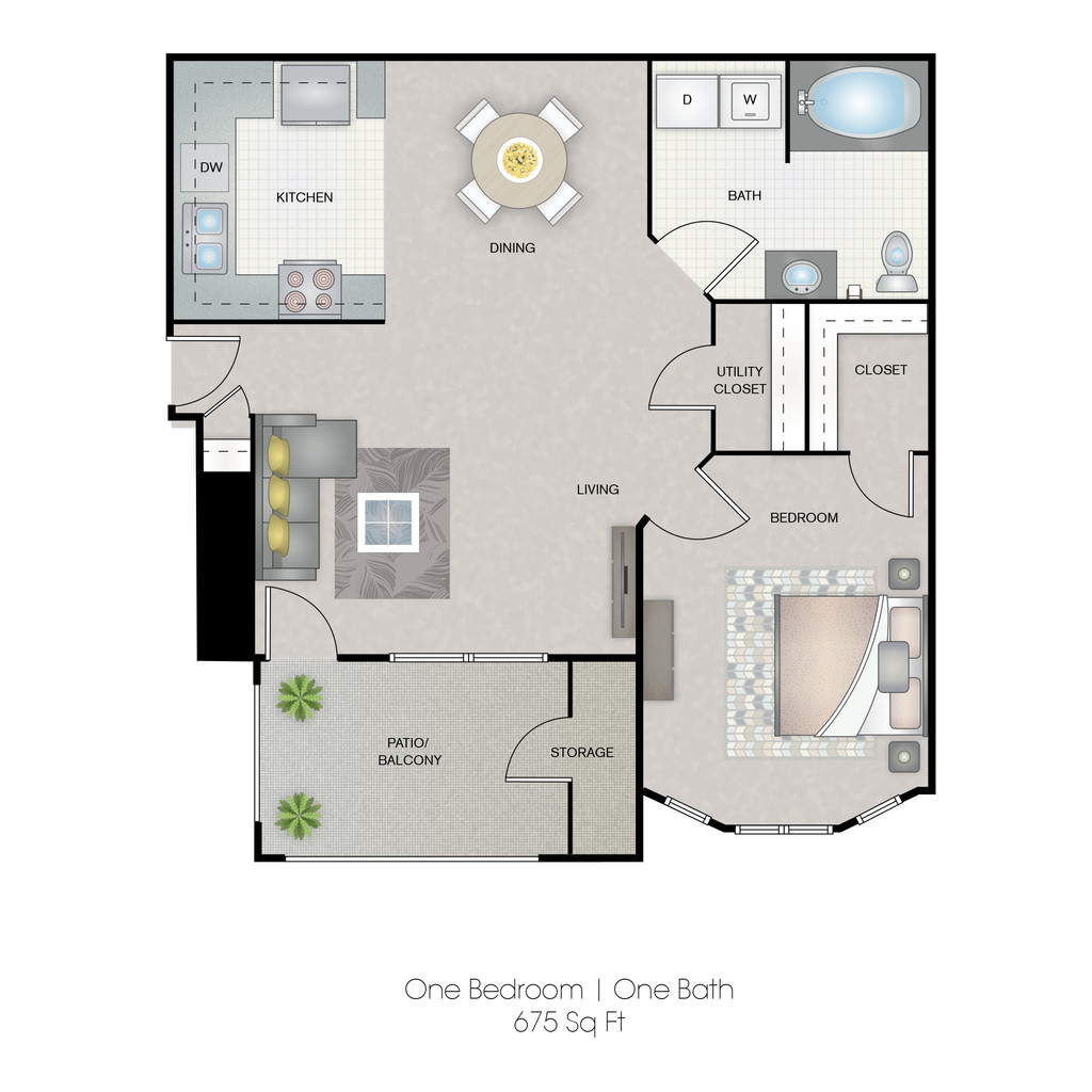 1 Bed, 1 Bath, 675 sq ftAvailable NowModel Gallery