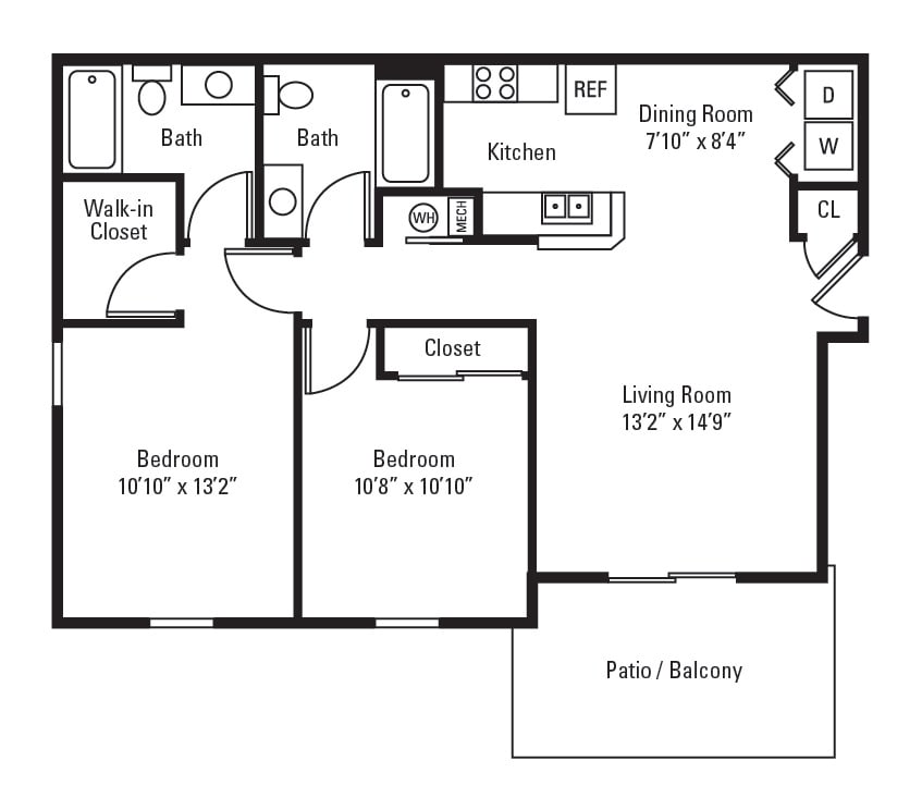 Apartment Model: Two Bedroom 2 Bath-939 sqftFrom $1,5702 Bedroom, 2 Bath, 939-1100 sq ftAvailable Now![]()