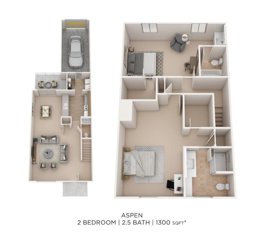 2 Beds, 2 Baths, 1100 sq ftAvailable NowModel Gallery