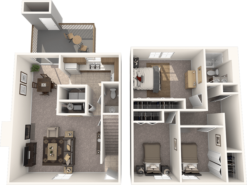 Apartment Model: The Den: Two Bedroom TownhomeFrom $1,3542 Bedroom, 1.5 Bath, 1000 sq ftAvailable Now![]()