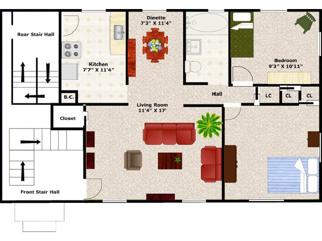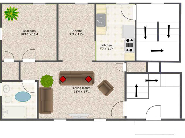 Apartment Model: 2BD Cedar Standard$9902 Bedroom, 1 Bath, 725 sq ftAvailable Now2BD Cedar Standard - Floorplan 1 2BD Cedar Upgraded