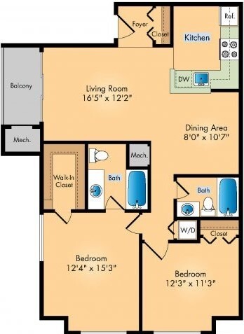 Apartment Model: THE MAPLE (2A 2AR)From $1,6162 Bedroom, 1 Bath, 950 sq ftAvailable Now![]()