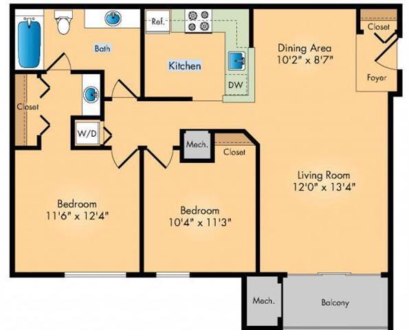 2 Beds, 2 Baths, 1040 sq ftAvailable NowLargest 2 BedroomThis is the largest 2 Bedroom at this PropertyModel Gallery