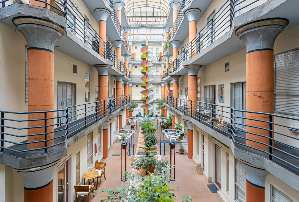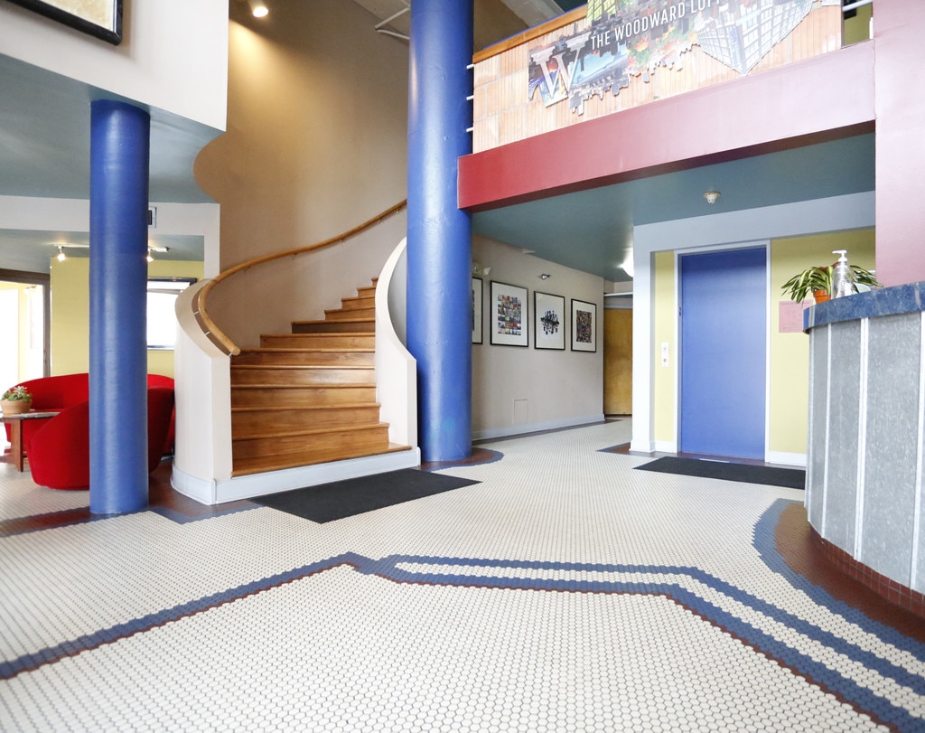 The Woodward Loft Apartments is located in the trendy Warehouse/Arts District, a walking neighborhood filled with art galleries, museums, restaurants and night clubs. The architectural design of the 1911 warehouse uses the atrium concept to bring light into the center of the building where Etruscan columns frame the interior promenade. Loft apartments are light filled boasting high ceilings, open spaces, masonry walls and large windows. These elements inspire great design in a relaxed environment where convenience is a lifestyle.