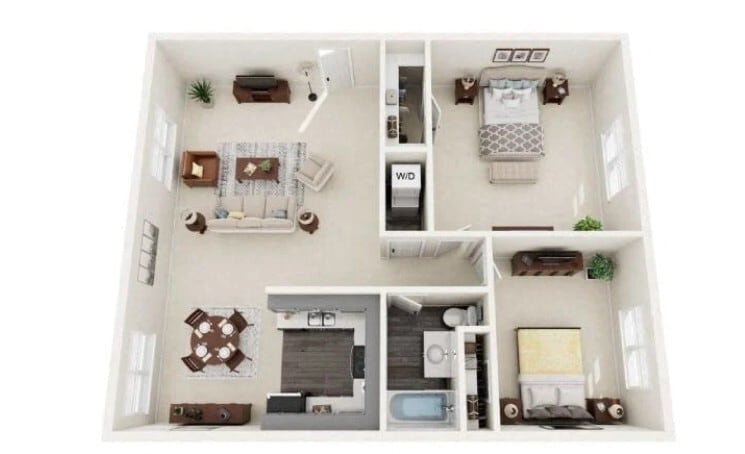 Apartment Model: 2 Bed 1 Bath - GoldFrom $9992 Bedroom, 1 Bath, 880 sq ftAvailable Now![]()