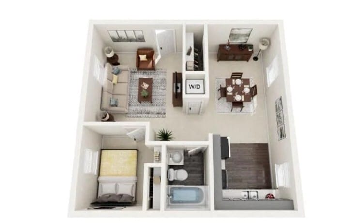Apartment Model: 1 Bed 1 Bath - SilverFrom $7491 Bedroom, 1 Bath, 760 sq ftUnavailable![]()