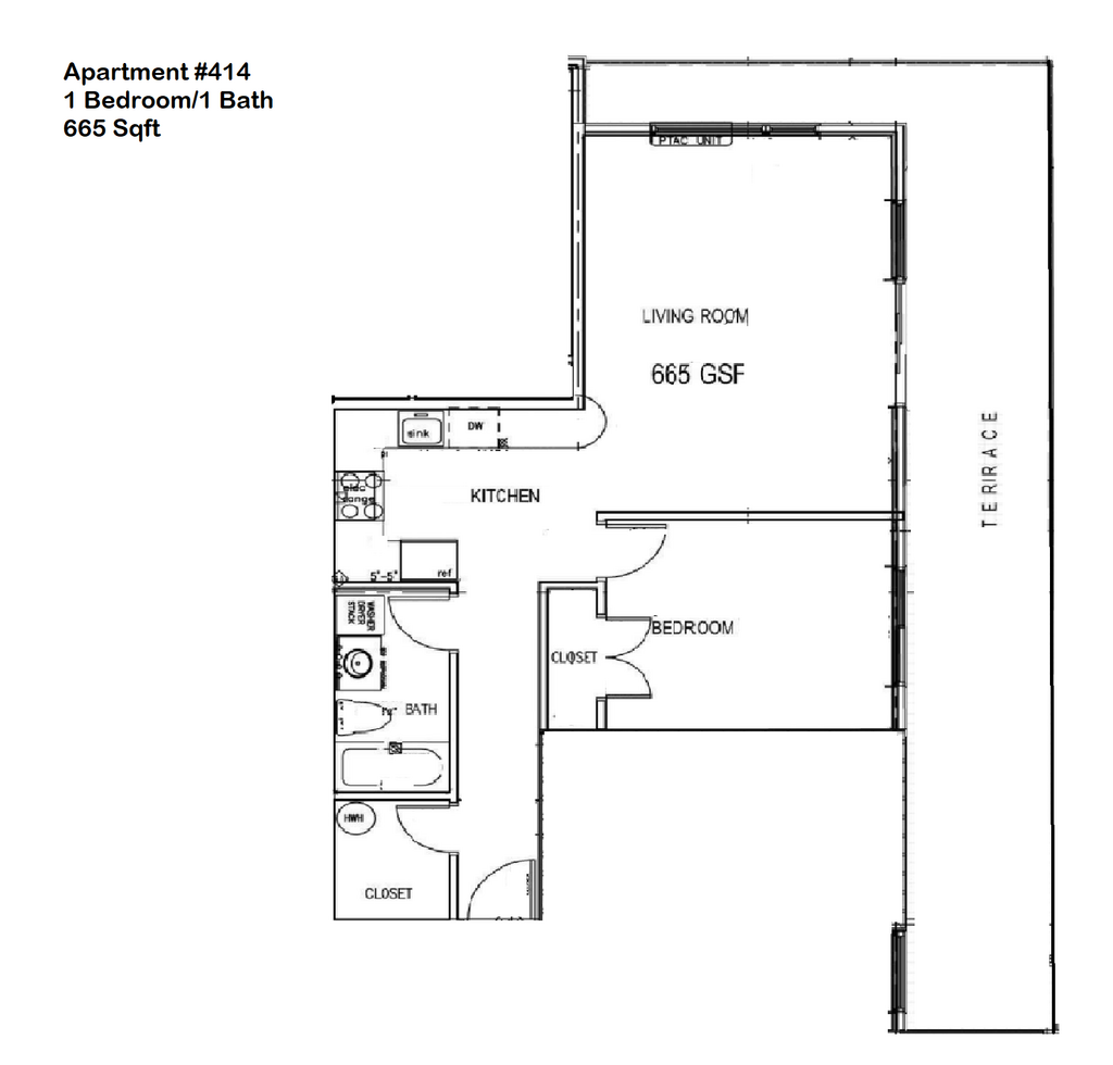 1 Bedroom, 1 Bath w/ Terrace - Floorplan 2 Apartment Unit: 414Apartment Model: 1 Bedroom, 1 Bath w/ Terrace$1,6251 Bedroom, 1 Bath, 640 sq ftAvailable January 1, 2026![]()
