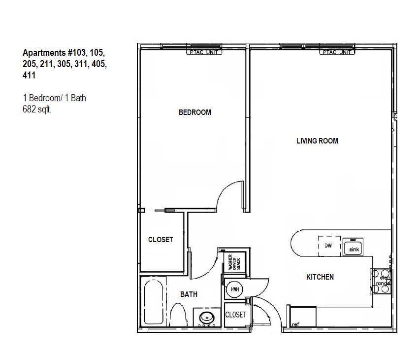 1 Bedroom, 1 Bath - Floorplan 5 Apartment Unit: 405Apartment Model: 1 Bedroom, 1 Bath$1,4951 Bedroom, 1 Bath, 682 sq ftAvailable Now![]()