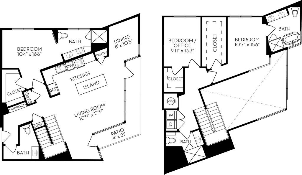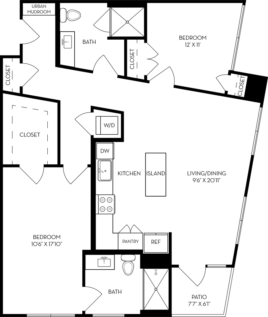 - Studio, 1-, 2- and 3-bedroom floorplans