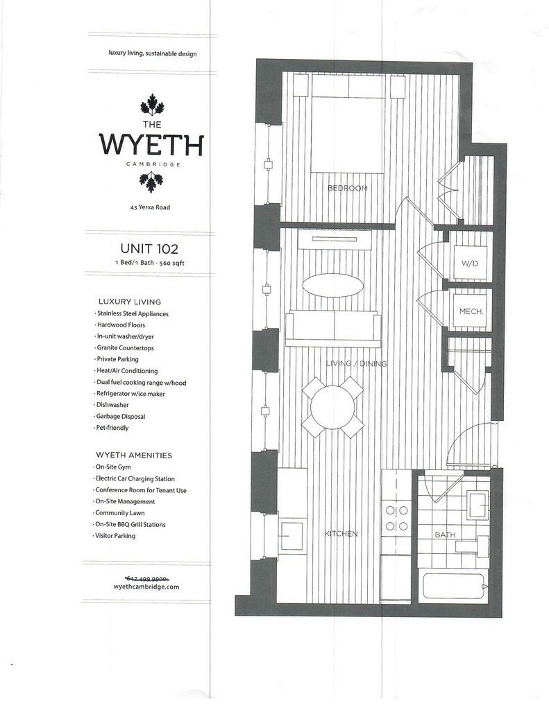 Welcome to The Wyeth, a residential community featuring one, two, three, and four bedroom apartments in Cambridge, MA. Spacious layouts and amenities welcome you home, along with exceptional service and an ideal location within walking distance to shopping, dining and entertainment options. Are you looking for an apt for rent in Cambridge, MA? Contact our friendly, professional office staff to schedule a tour today.