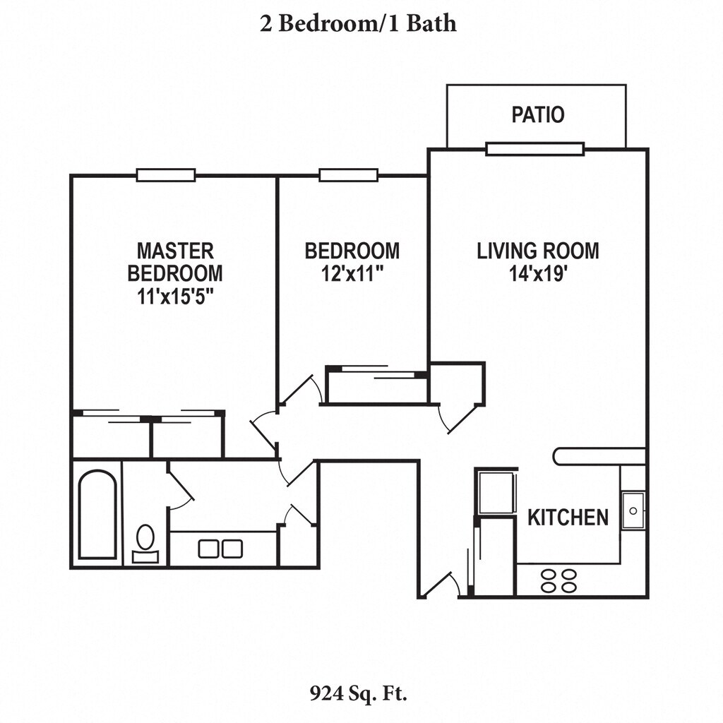 Apartment Model: Two Bed, One Bath2 Bedroom, 1 Bath, 924 sq ftUnavailableFloorplansPhotos![]()