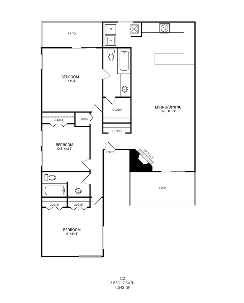 A3 Renovated - Floorplan 1 2 Bedrooms