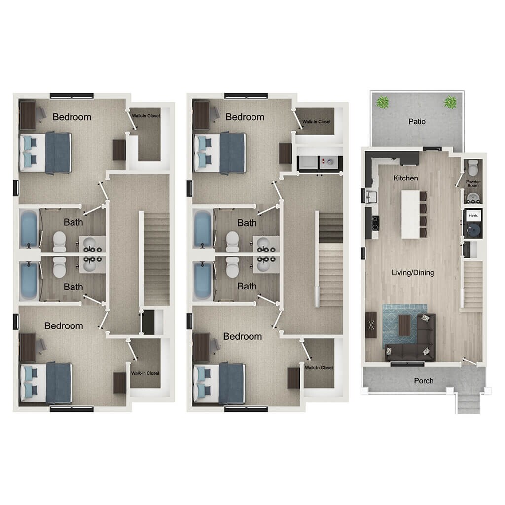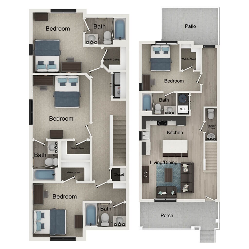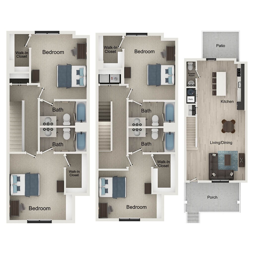 3 Beds, 3.5 Baths, 307 sq ftAvailable NowLargest 3 BedroomThis is the largest 3 Bedroom at this PropertyModel Gallery