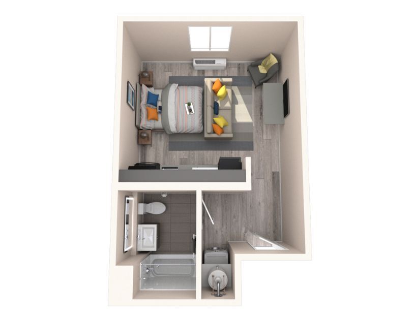 Apartment Model: Studio D$1,099Studio, 1 Bath, 321 sq ftAvailable January 6, 2026Studio D - Floorplan 1 Apartment Unit: PrivateApartment Model: Studio D$1,099Studio, 1 Bath, 321 sq ftAvailable January 6, 2026Studio G