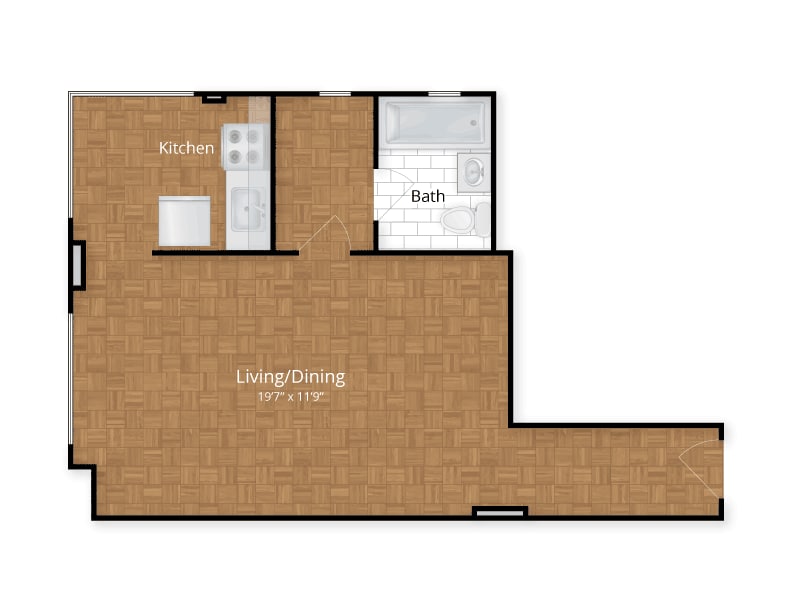 Studio, 1 Bath, 311-543 sq ftAvailable NowModel Gallery