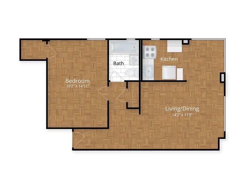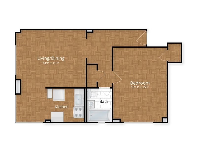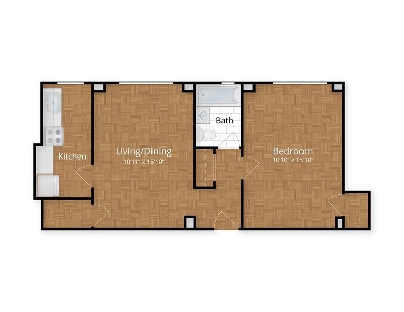 Studio, 1 Bath, 320-535 sq ftAvailable NowModel Gallery