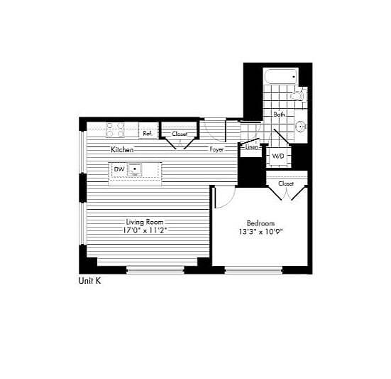 S2 - Floorplan 1 Apartment Unit: 1619Apartment Model: S2$1,910Studio, 1 Bath, 603 sq ftAvailable Now1 Bedroom