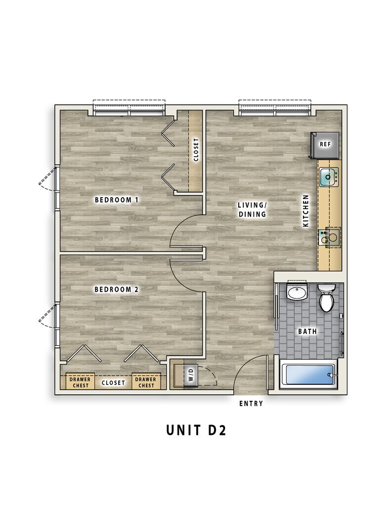 - Studio–2 Bedrooms