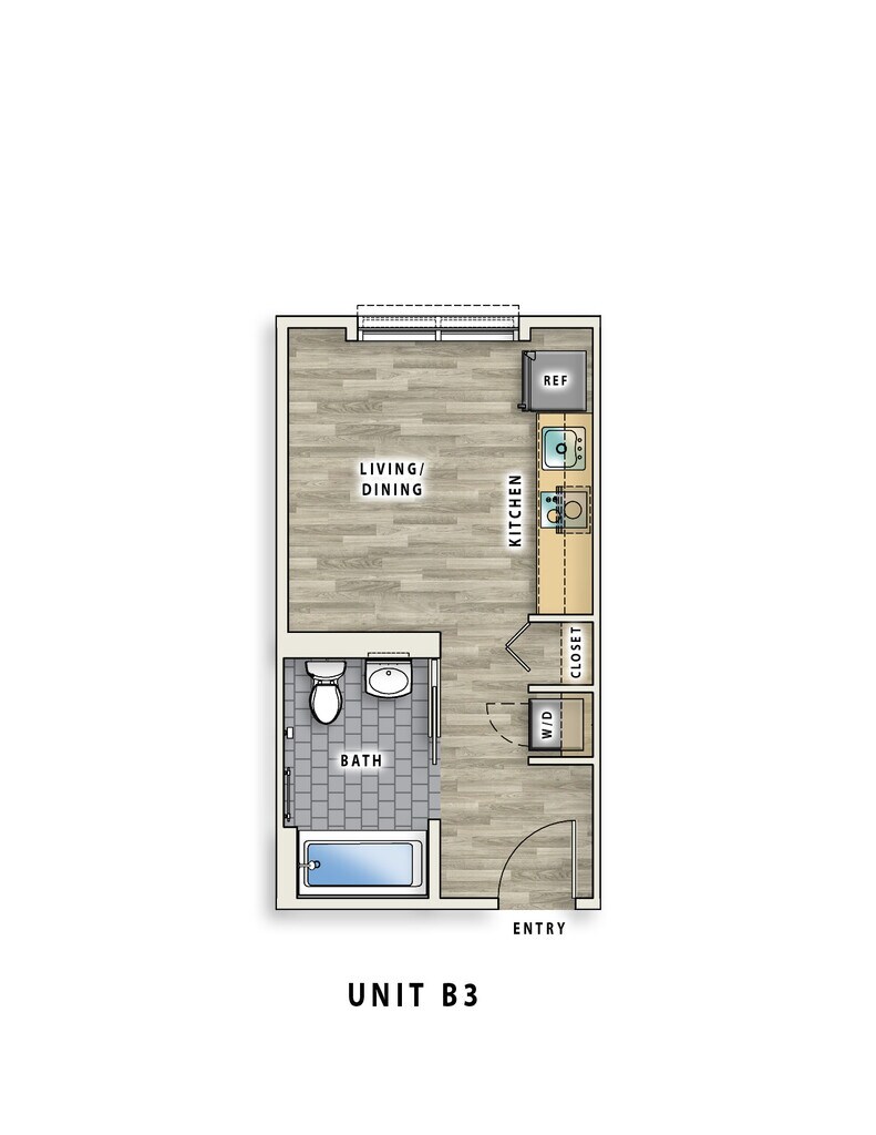 Studio B3 - Floorplan 9 Apartment Unit: 408Apartment Model: Studio B3$2,395Studio, 1 Bath, 291 sq ftAvailable October 31, 20251 Bedroom