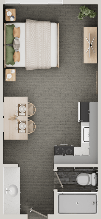 Apartment Model: Open One BedroomCall For RatesStudio, 1 Bath, 427 sq ftUnavailable![]() - Open One Bedroom - Floorplan 1