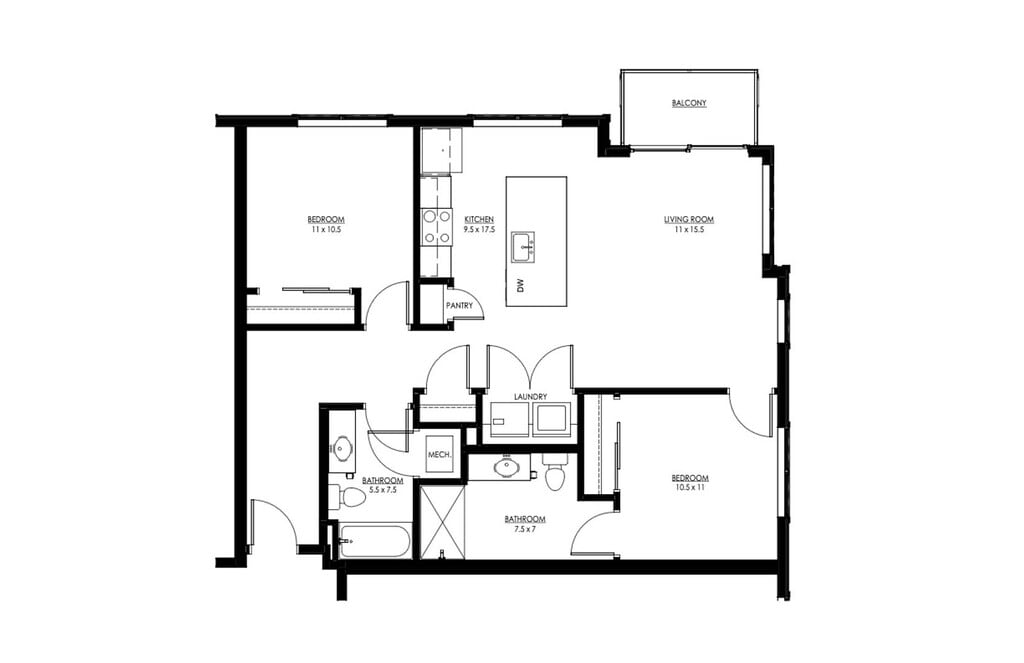 Apartment Model: 2DFrom $2,2502 Bedroom, 2 Bath, 1090 sq ftUnavailable![]()