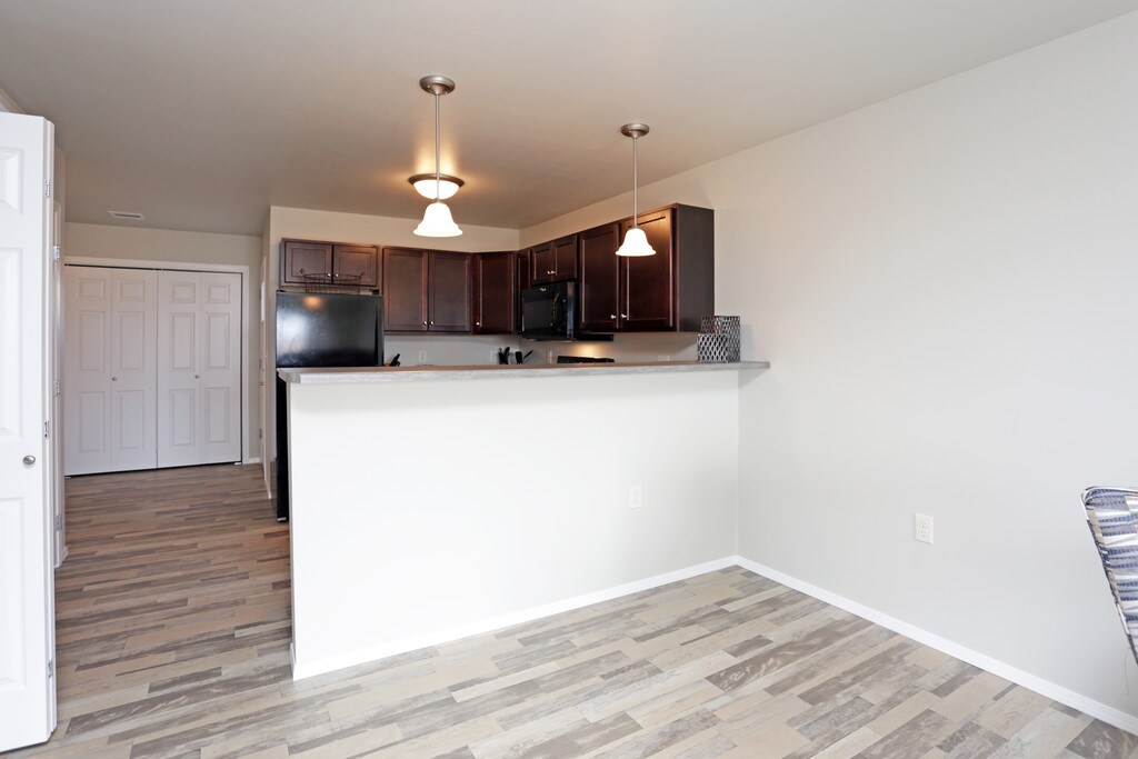 December 4, 2017Pros: It's nice on the inside. The two bedroom is not the biggest, but it works if you don't have a lot of furniture. The entryway is spacious and the coat closet is nice too. There is lots of kitchen cabinets. The linen closet is handy! The patio is also pretty big compared to other places. Cons: The builders didn't tighten the knobs all the way so almost all of the knobs to the cabinets and drawers and doors are loose. The sliding glass door is SUPER drafty. We are going to get one of those ...window plastic things because we literally freeze when we sit in the living room. I'm sure it isn't helping our electricity bill. When the fridge runs, its quite noisy. The washer and dryer are behind thin doors so when they are running it also gets loud. We have lived in two apartments previous to this one and we have never been able to hear our neighbors (side and above) as much as we do here. Especially when we are in bed and someone comes home at night the stairs are SO LOUD! And, if it is completely quiet in here, we can hear a normal conversation from the people above us. The parking is VERY limited. Cars are supposed to have parking passes but they do not seem to enforce it very well. But it sucks because there are no places for guests to park! So if you can get over those things, this place is pretty good :)Read MoreReview from Apartments.com