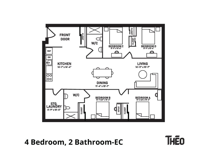 Theo Ottawa - Student Living offers 1 to 4 Bedroom starting from $740. Here is the current pricing and availability: