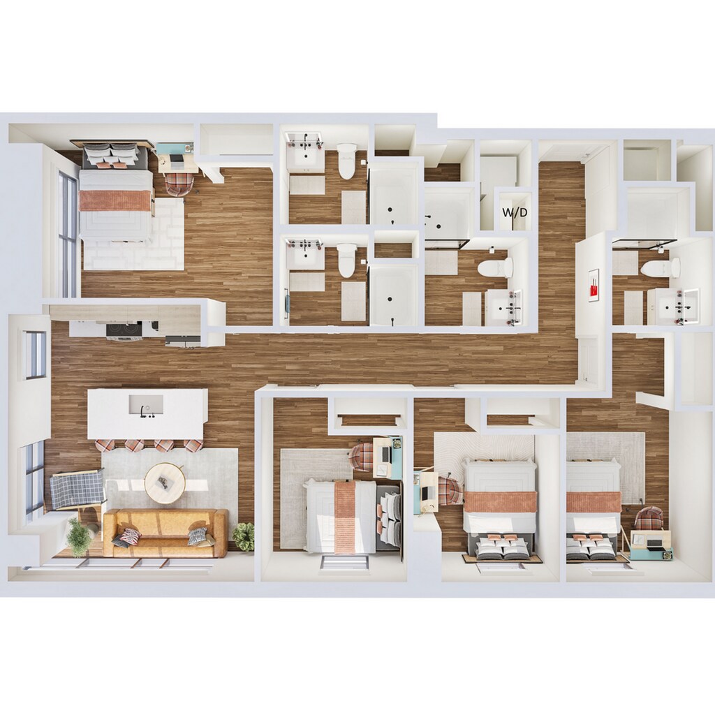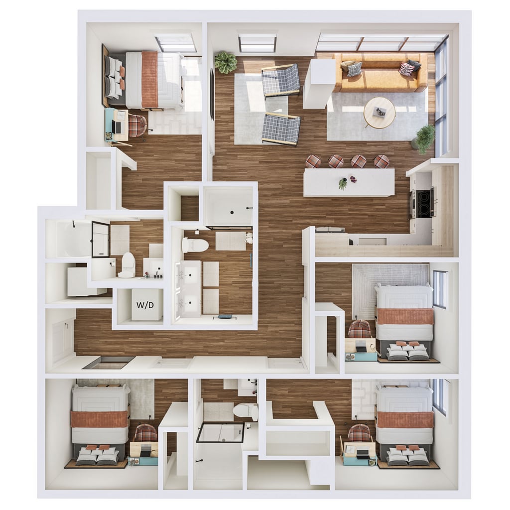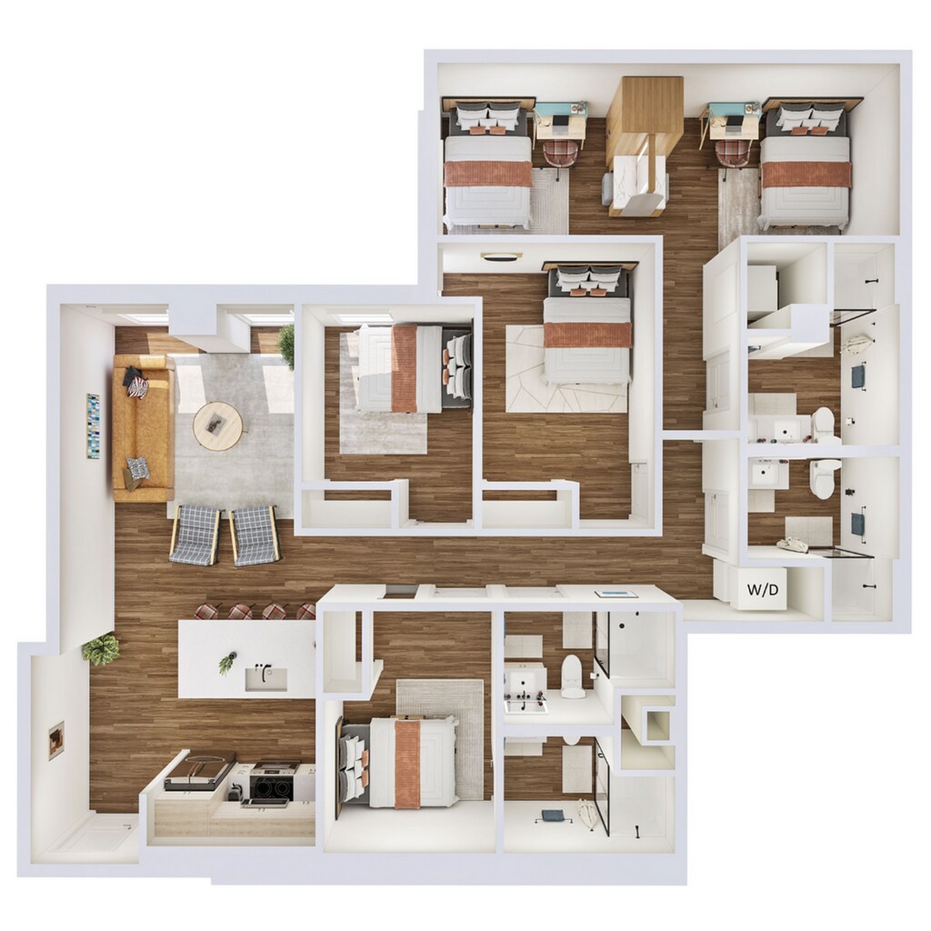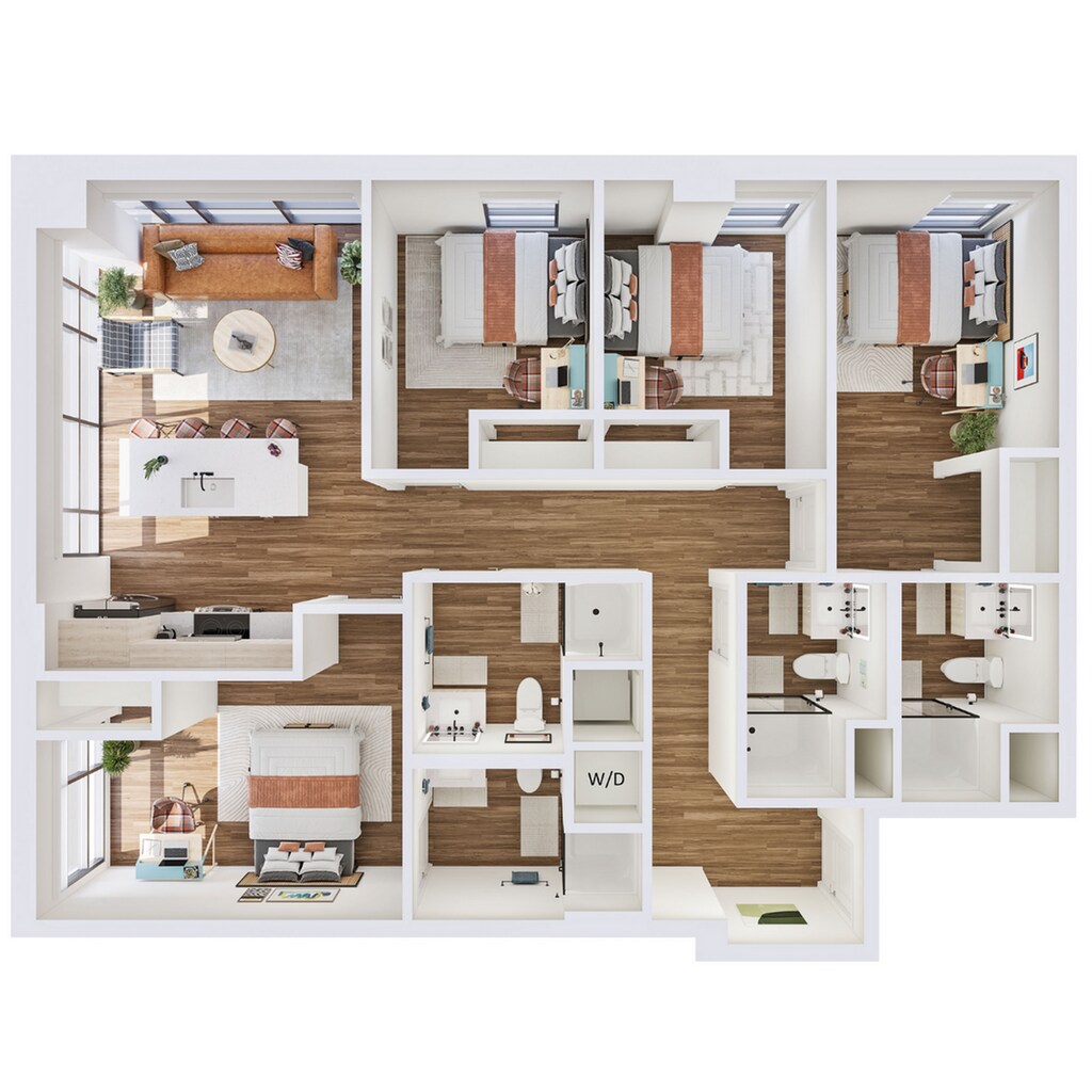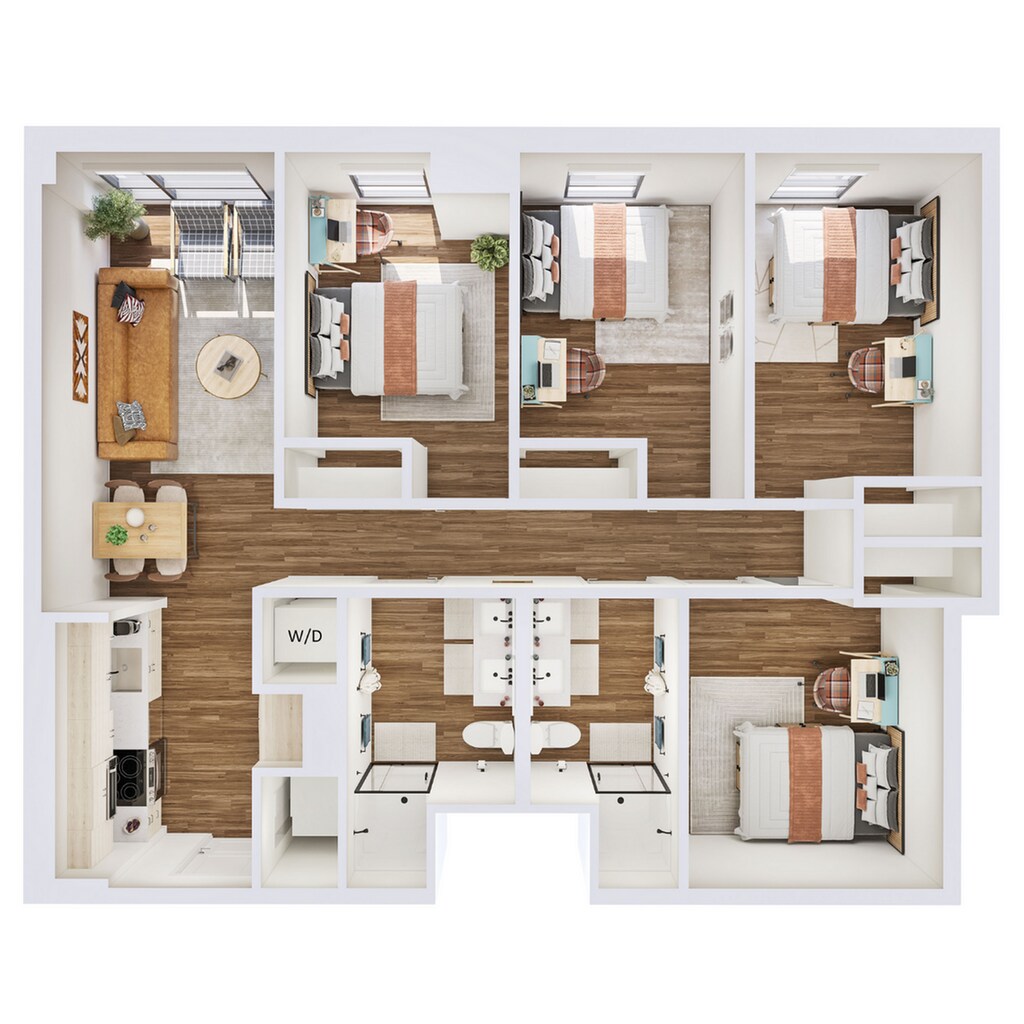 D1 - Floorplan 1 Apartment Unit: PrivateApartment Model: D1$1,5394 Bedroom, 2 Bath, 1066 sq ftAvailable August 14, 2026Floorplan D4
