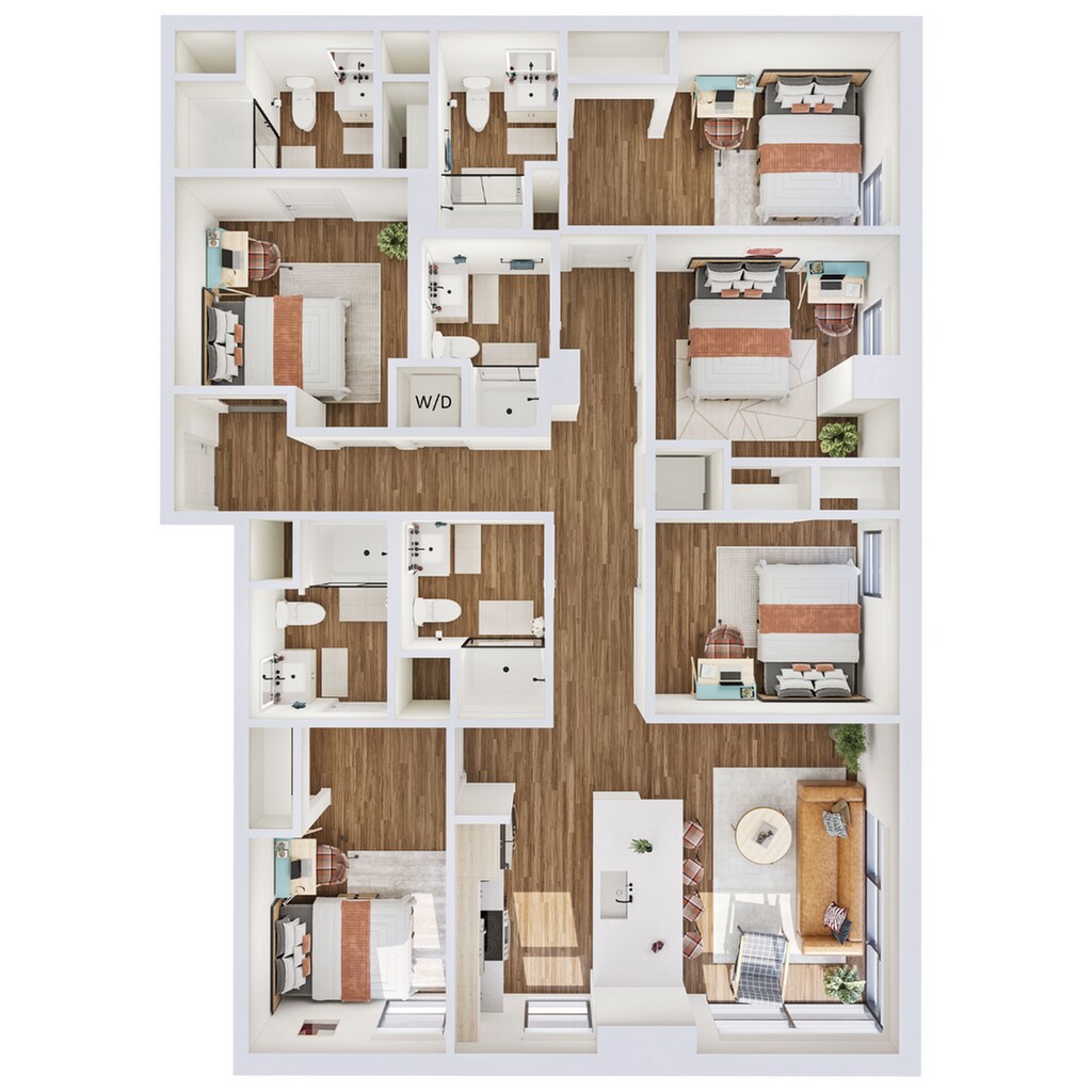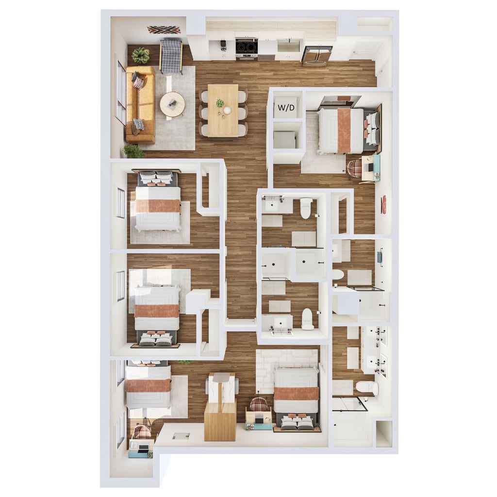 B3 - Floorplan 1 Apartment Unit: SharedApartment Model: B3$1,0992 Bedroom, 2 Bath, 956 sq ftAvailable August 14, 20264 Bedrooms