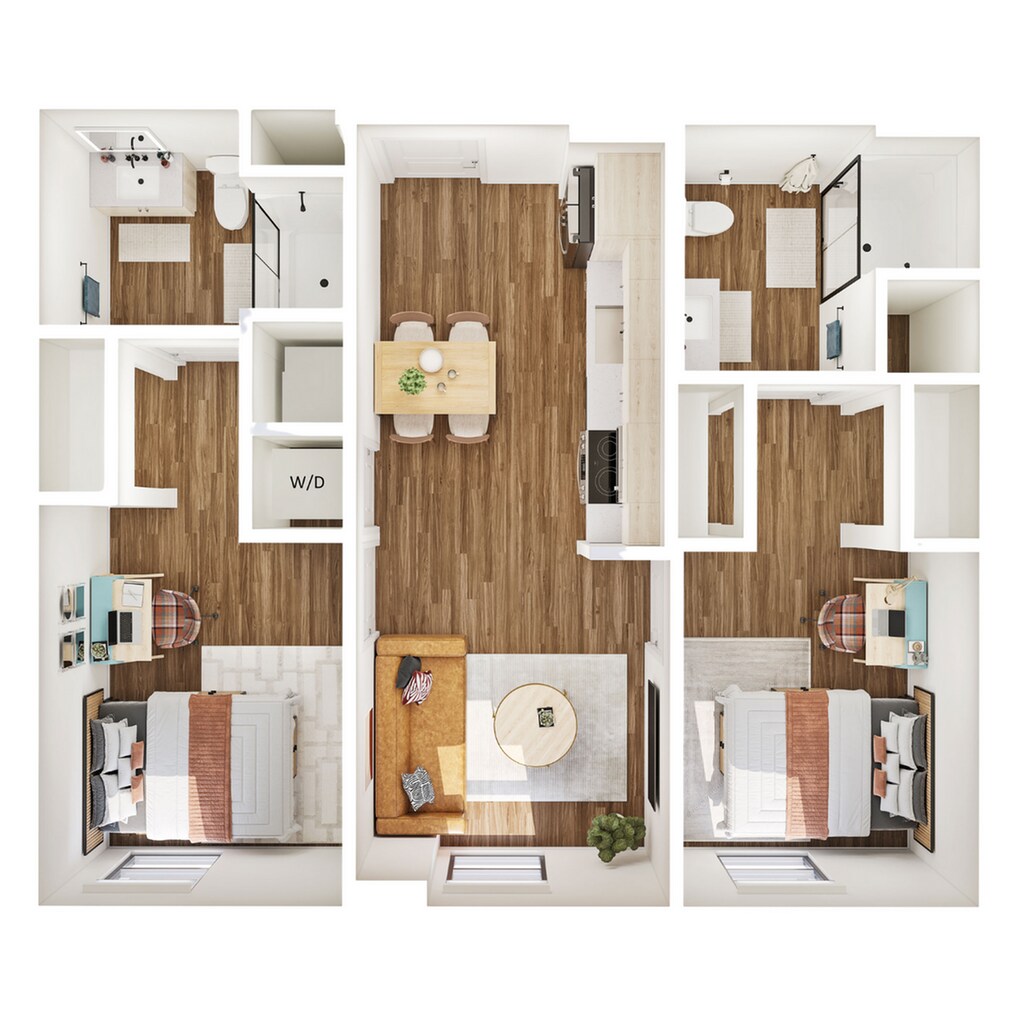 2 Beds, 2 Baths, 684 sq ftAvailable August 14, 2026Model Gallery