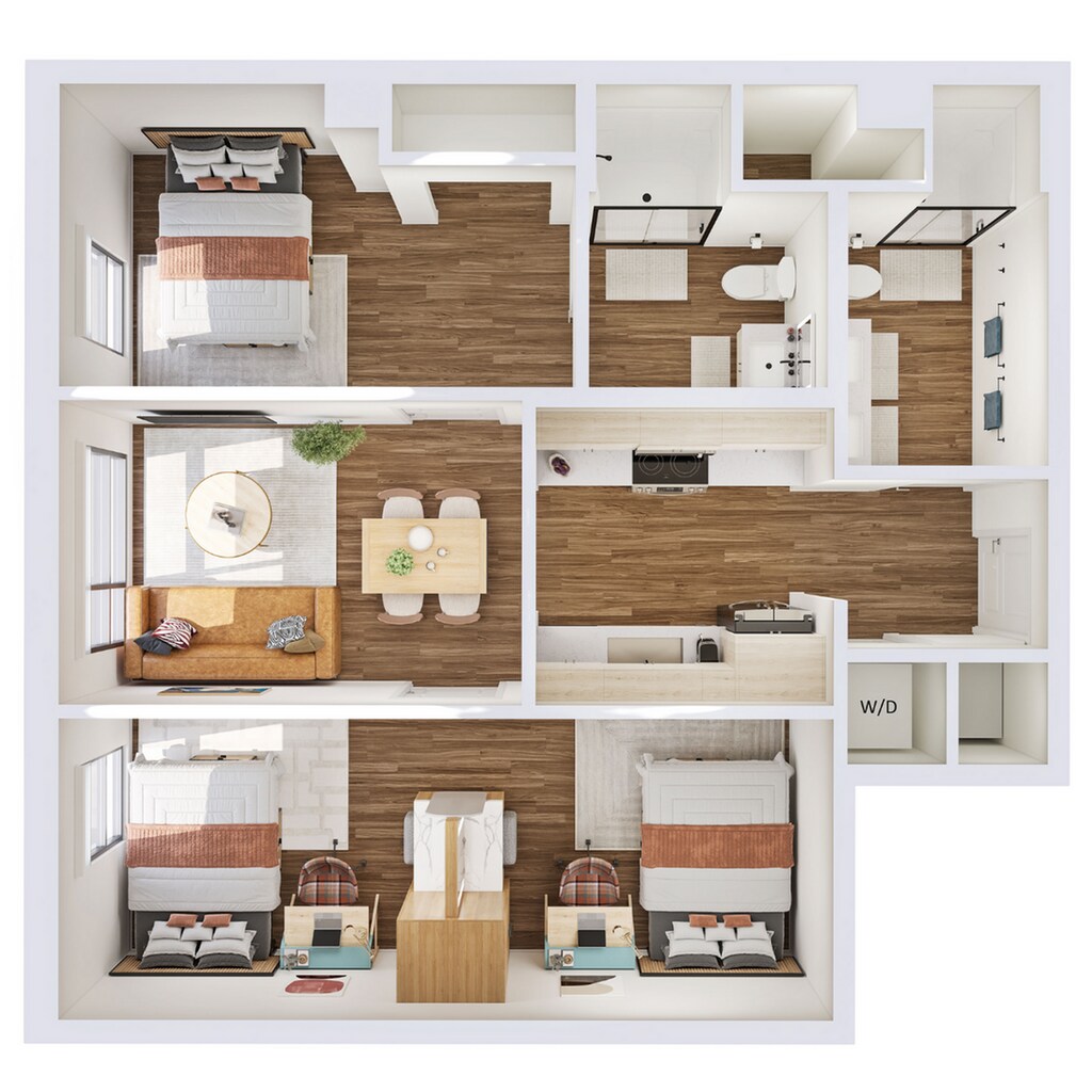 4 Beds, 2 Baths, 1066 sq ftAvailable August 14, 2026Model Gallery
