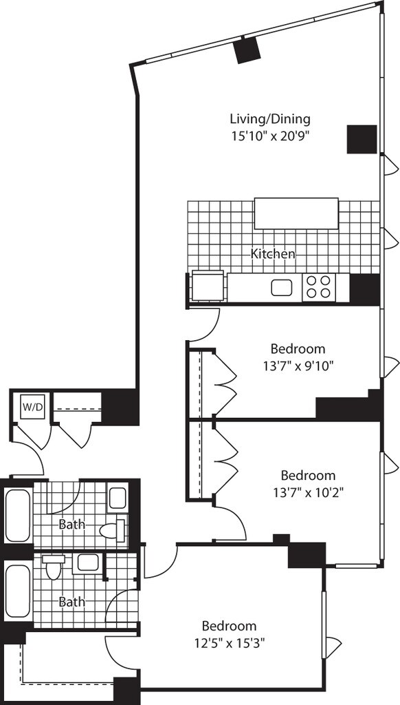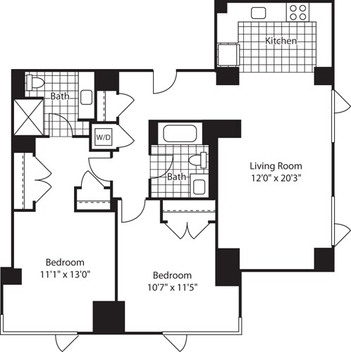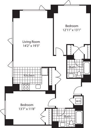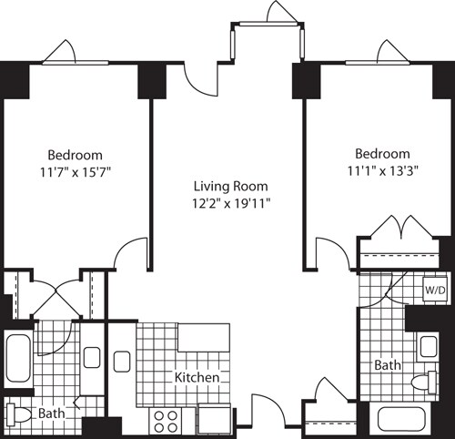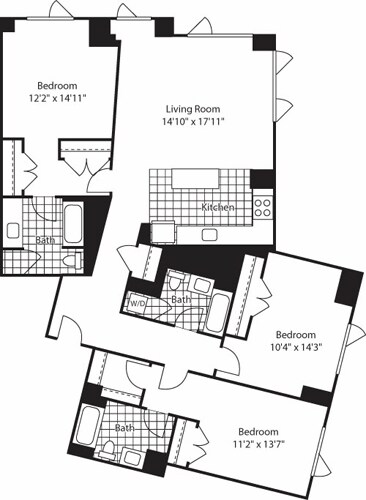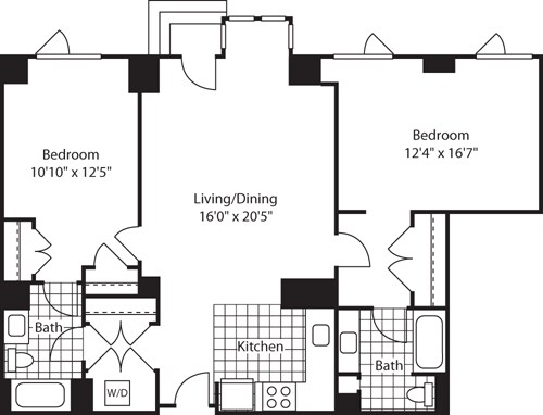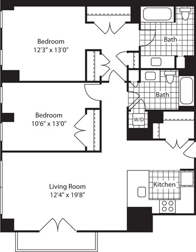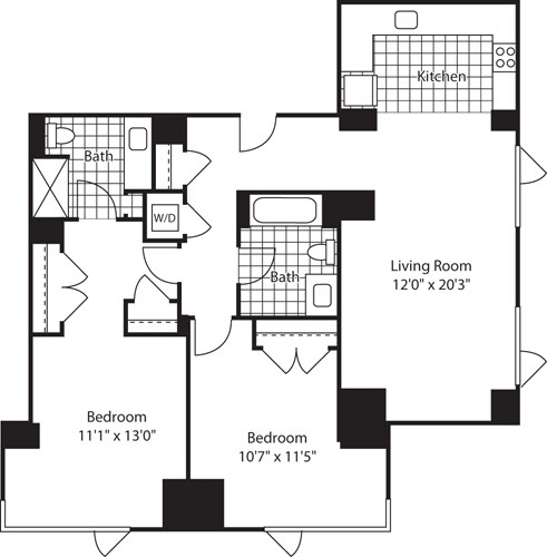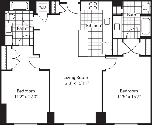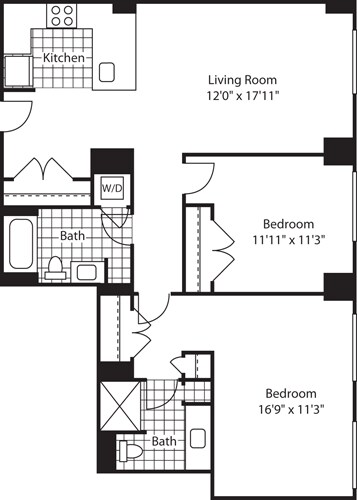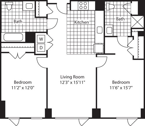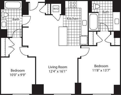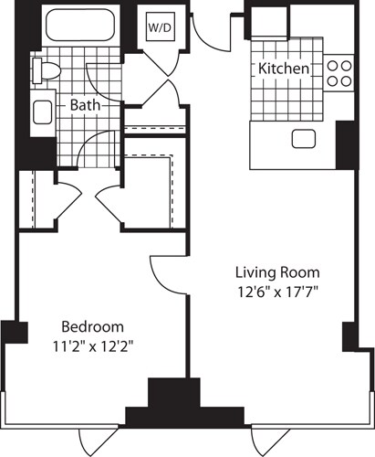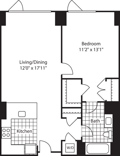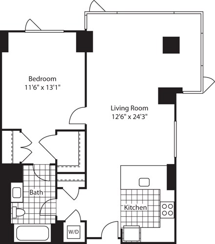 Apartment Model: 1 Bed (North) - 672 No BalconyFrom $3,8171 Bedroom, 1 Bath, 672-717 sq ftAvailable Now![]()