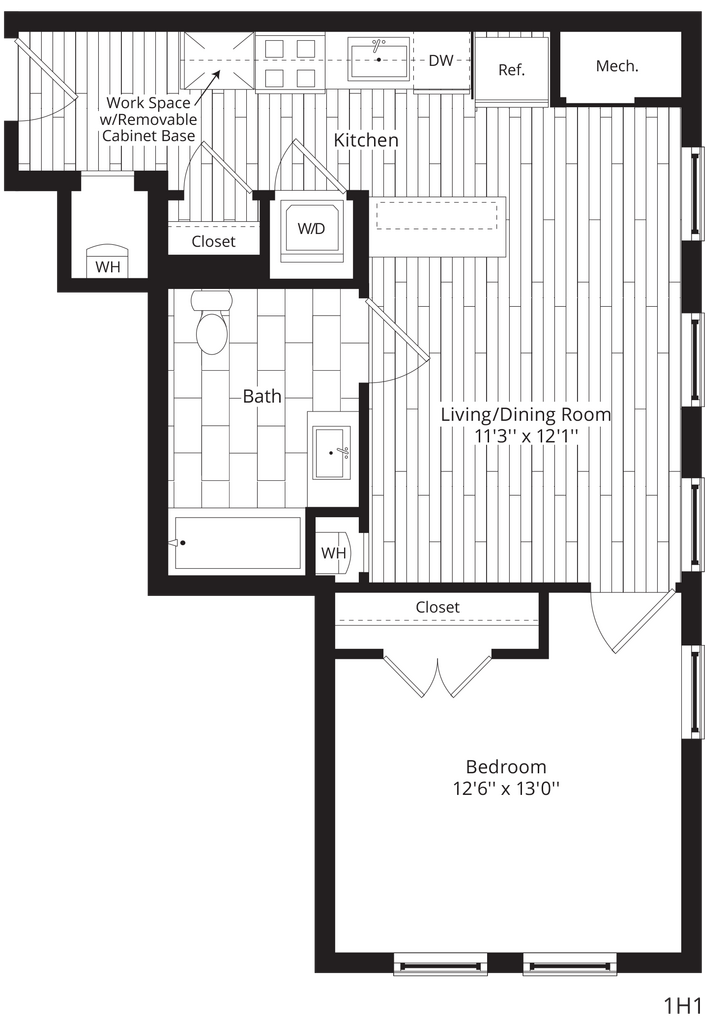 1 Bed, 1 Bath, 618 sq ftModel Gallery