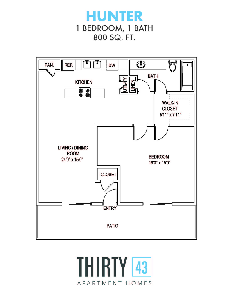 Hunter - Floorplan 1 Apartment Unit: 2901KApartment Model: Hunter$1,3501 Bedroom, 1 Bath, 800 sq ftAvailable November 18, 20252 Bedrooms