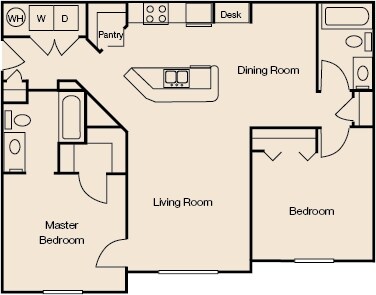 2 Bed/2 Bath - Floorplan 1 3 Bedrooms