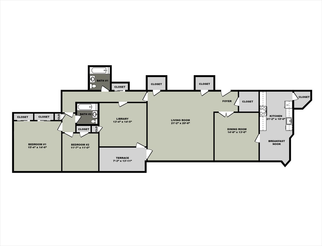 2 Beds, 1 Bath, 1100 sq ftModel Gallery