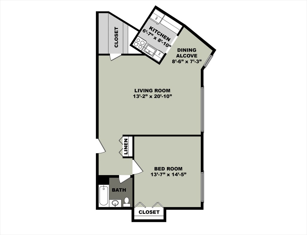 1 Bed, 1 Bath, 840 sq ftAvailable Dec 1Largest 1 BedroomThis is the largest 1 Bedroom at this PropertyModel Gallery