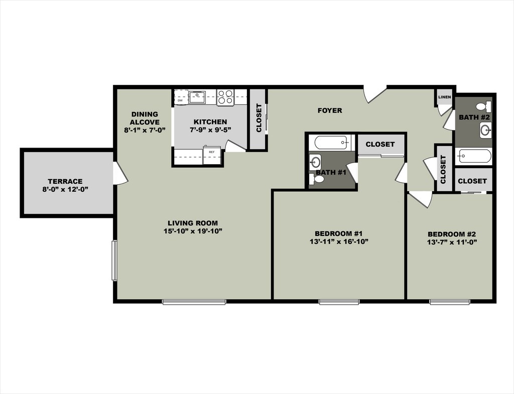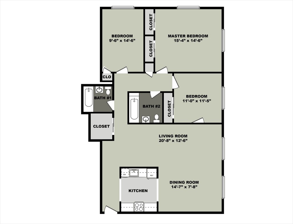 Apartment Model: 1x1 8001 Bedroom, 1 Bath, 800 sq ftAvailable NowFloorplansPhotos![]()