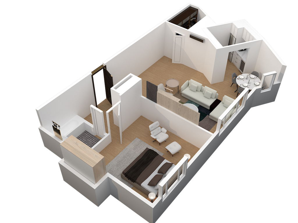 1 Bed, 1 Bath, 756 sq ftModel Gallery