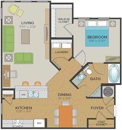 Apartment Model: A1From $1,2001 Bedroom, 1 Bath, 820 sq ftAvailable Now![]()