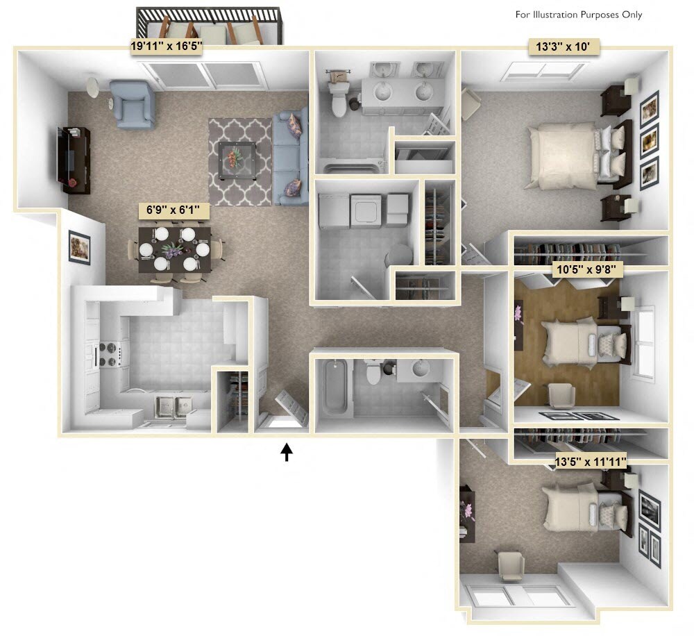1 Bedroom to 3 Bedroom Apartments at Thornridge Apartments currently range from $872 to $1,413
