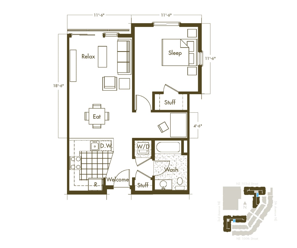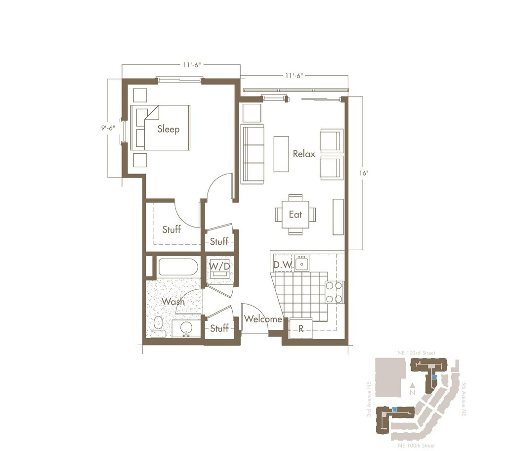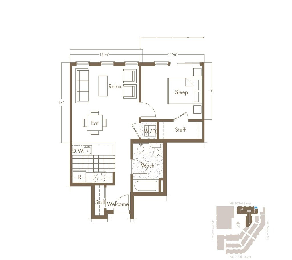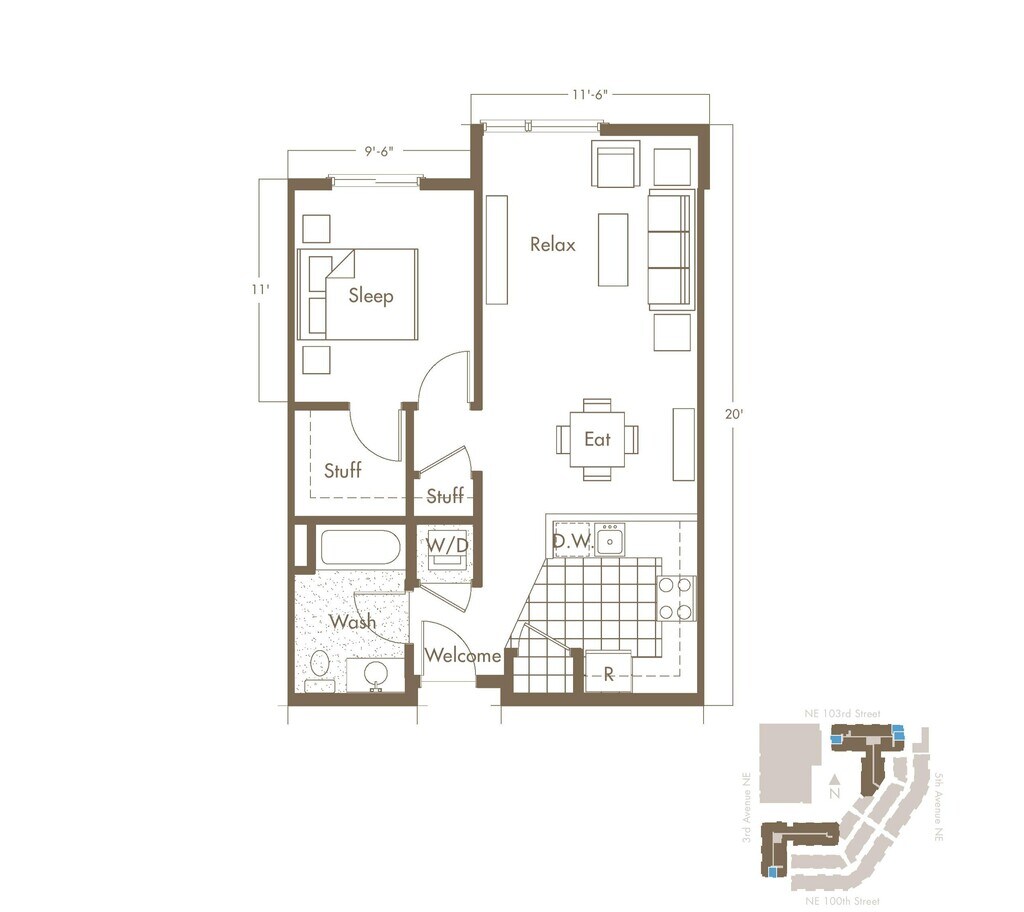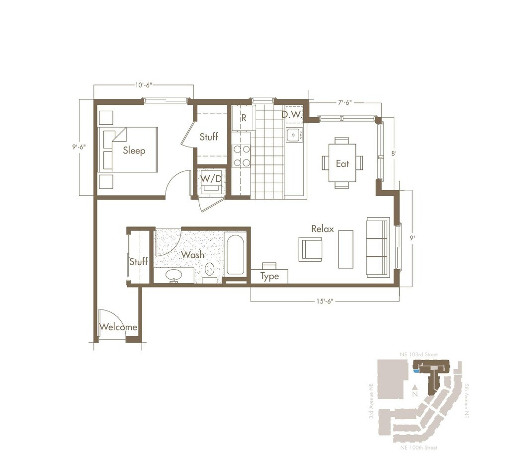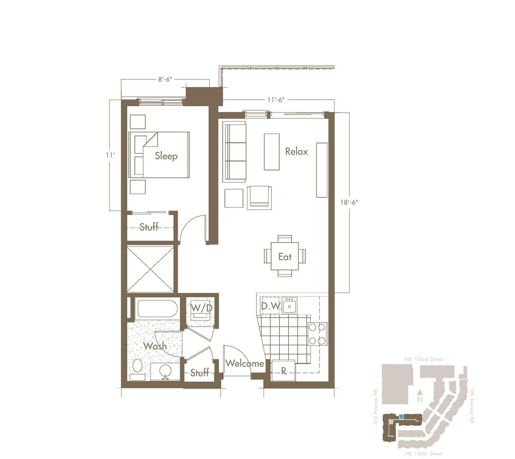 U4 - Floorplan 1 Apartment Unit: 2-308Apartment Model: U4$2,2341 Bedroom, 1 Bath, 605 sq ftAvailable NowFloorplan A8