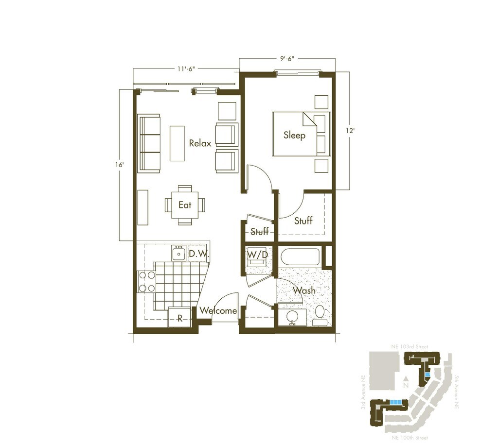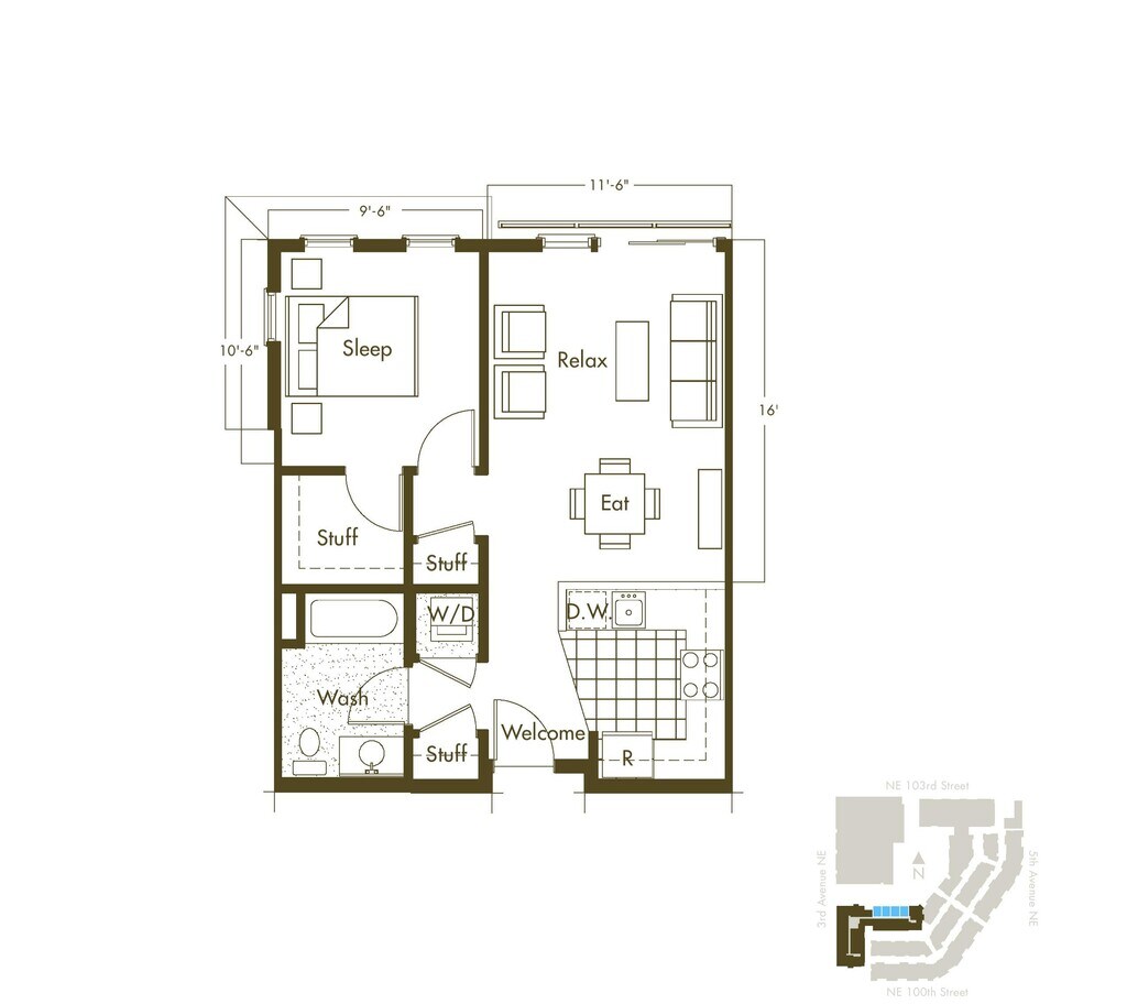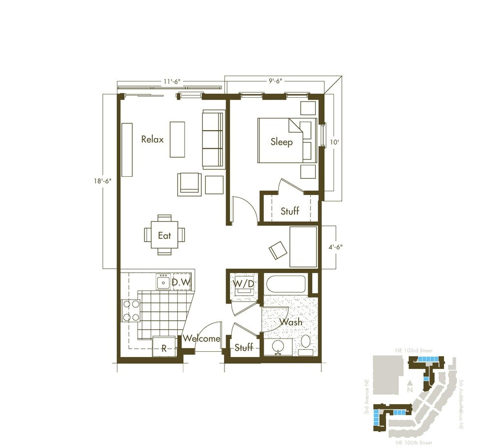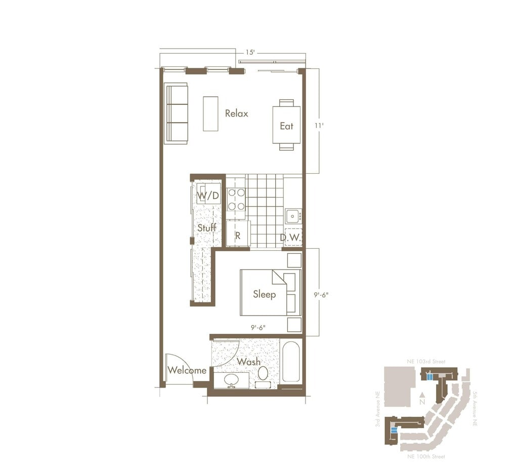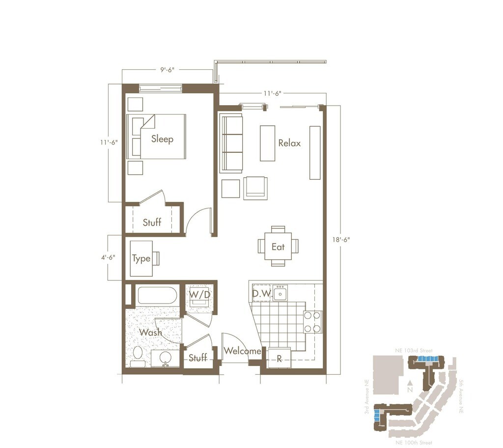 U4 - Floorplan 1 Apartment Unit: 2-308Apartment Model: U4$2,2341 Bedroom, 1 Bath, 605 sq ftAvailable NowFloorplan A8